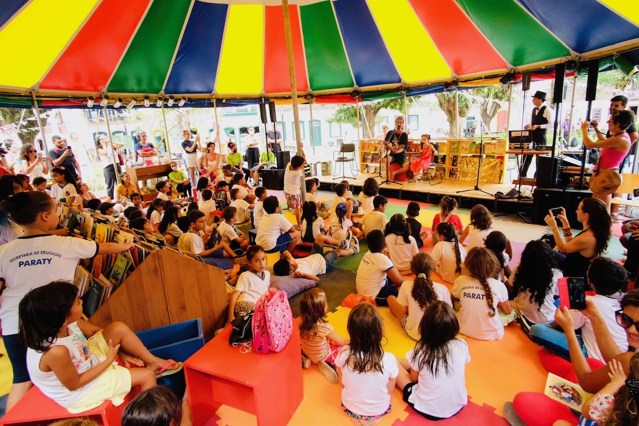 Neste primeiro dia da 20ª Flipinha – a festa para as crianças, famílias e educadores -, as ruas de Paraty já estavam cheias e o evento de abertura, lotado. Uma cidade festiva como Paraty aguardava ansiosamente por este momento tão único e mágico. E, para condizer com o clima de festa, começamos a celebração com um sarau. Este e todos os eventos da programação da Flipinha terão tradução e interpretação em libras.