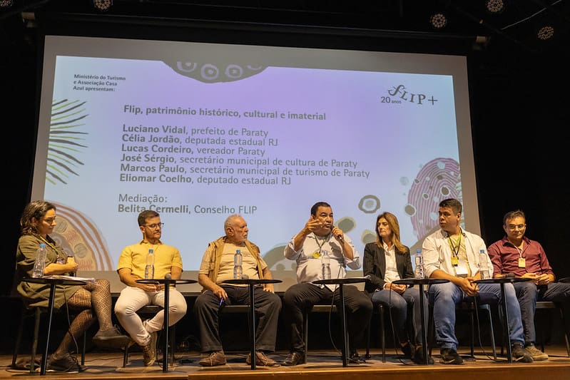 Mediado por Belita Cermelli, diretora de Educação e Cultura e uma das fundadoras da Flip, o painel contou com presenças de Luciano Vidal, prefeito de Paraty; Lucas Cordeiro, vereador da cidade; Célia Jordão, deputada estadual do Rio de Janeiro, responsável por apresentar na Alerj o projeto de lei que reconheceu a Flip como Patrimônio Histórico, Cultural e Imaterial do estado em 2021; José Sérgio Barros, secretário municipal de Cultura de Paraty; Marcos Paulo Magalhães Coutinho, secretário municipal de Turismo de Paraty; e Eliomar Coelho, deputado estadual do Rio de Janeiro.
