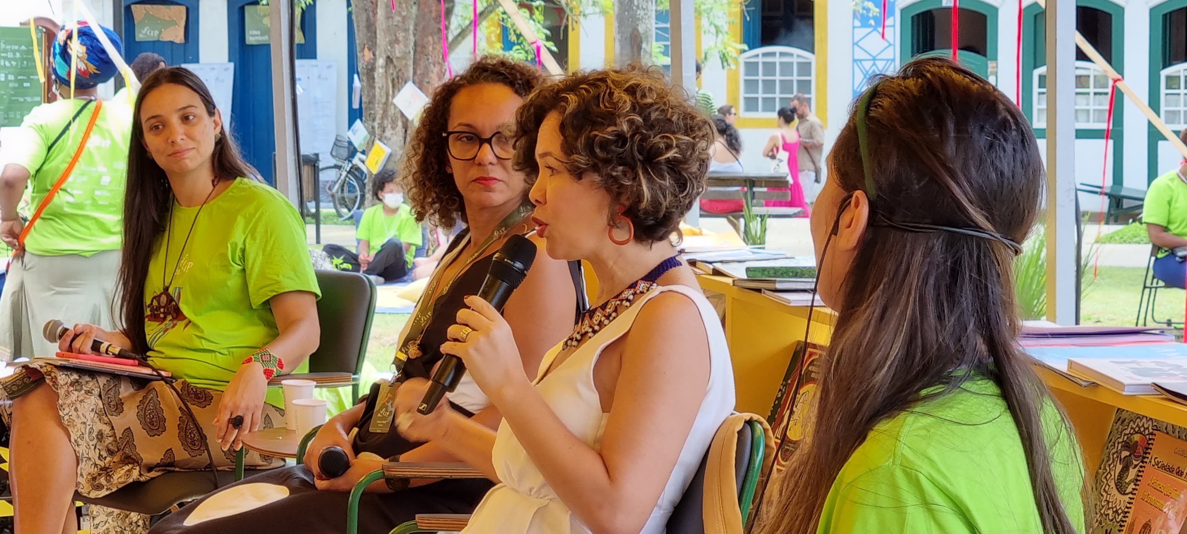No terceiro dia de Flipinha, a roda de conversa, “Conversa à beira-mar”, na Central Flipinha, contou com Simone Mota e Andréa Oliveira, autoras que buscam apreender todo o legado que as representantes das vozes femininas negras do país deixaram. “Nós precisamos lutar para que esta literatura chegue a todos. É um direito nosso”, disse Simone Mota, autora de “Carolayne, Carolina e as histórias do diário da menina”.